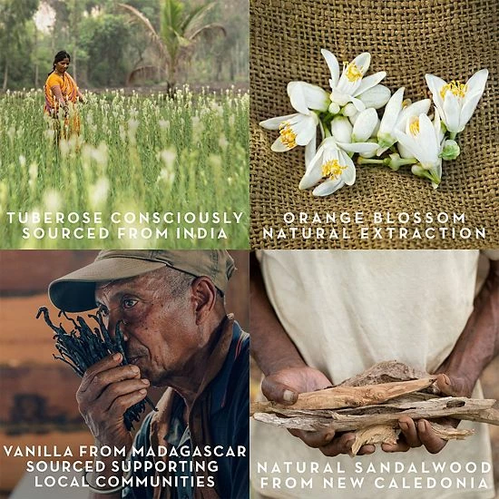 Fragrance Description: This floral perfume opens with bright notes of orange blossom from Egypt followed by an intense heart of tuberose from India. Sandalwood from New Caledonia takes an addictive creamy turn, as it meets a sweet vanilla perfume from Madagascar to balance the intense women’s fragrance.
