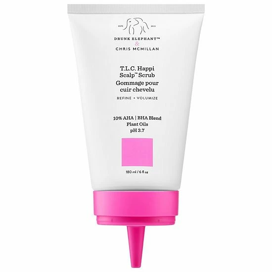 What Else You Need to Know: This scrub is Drunk Elephants secret for a healthy-looking scalp and fuller-looking hair. Using antioxidant and fatty-acid-rich plant oils and a quick-absorbing multi-amino acid blend, T.L.C. Happi Scalp Scrub keeps the scalp nourished, flake-free, and balanced. T.L.C. Happi Scalp Scrub has a pH level of 3.7.