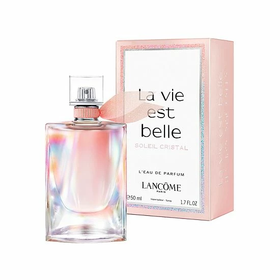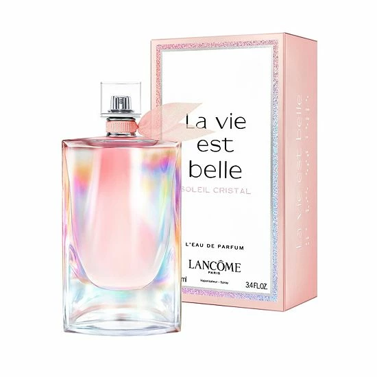 Fragrance Description: La Vie Est Belle Soleil Cristal, the luminous, salty, gourmand perfume is an eco-designed solar addiction that shines bright with a warm floral heart. The Eau de Parfum is composed of sparkling notes of mandarin, a bursting heart of white flowers, and a wake of sunkissed vanilla and coconut.