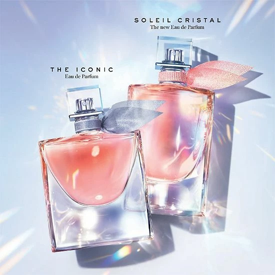 About the Bottle: In hand, the La Vie Est Belle Soleil Cristal perfume bottle reveals its infinite holographic shades, like a crystal diffracting the light that passes through it. From its warm golden heart to the tip of its iridescent wings, light radiates from the perfume bottle like a halo of happiness.