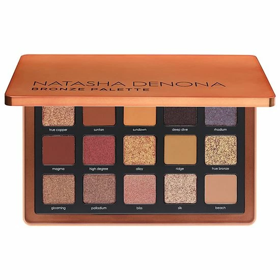– 0.65 oz/ 18.25 g shades in True Copper (warm copper), Suntan (warm medium brown), Sundown (medium light-yellow brown), Deep Dive (deep brown eggplant), Rhodium (medium warm purple with silver reflect), Magma (medium dark umber), High Degree (red copper), Alloy (vibrant bronze with golden reflect), Ridge (medium warm mustard), True Bronze (foil bronze), Gloaming (burnt umber with a light bronze reflect), Palladium (warm pinkish taupe),Bliss (red pink with golden green reflect), Silk (foiled rich champagne), Beach (warm nude)