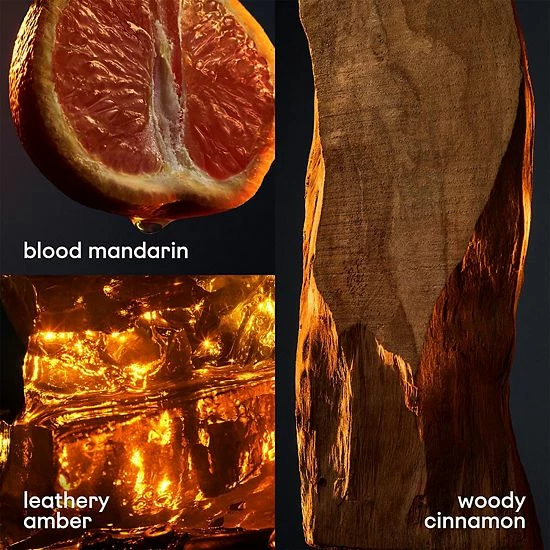 Frosted Grapefruit, Blood Mandarin, Peppermint, Rose Absolute, Musk, Cinnamon Bark, Blond Leather, Tonka Bean, Patchouli, White Wood, Amber Ketal.