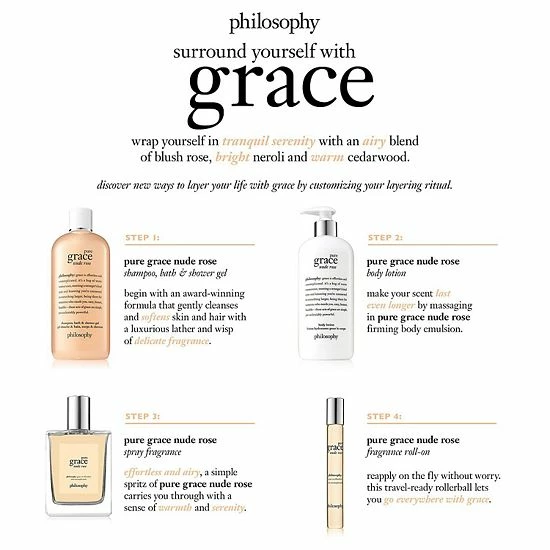 Introducing Pure Grace Nude Rose, a whimsical and ethereal take on the beloved Pure Grace spray fragrance. Effortless simplicity is expressed in a beautiful composition of delicate blush rose balanced by clean dewy greens, neroli, and bright orange flower cocooned in the warmth and sensuality of cedarwood and sunkissed musk.