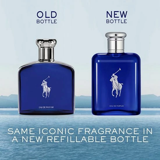 About the Bottle: The redesigned refillable glass bottle is dressed in a brilliant blue paired with a statement-making chrome cap, echoing the aquatic men’s perfume within.