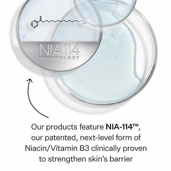 – NIA-114 (Patented Form of Niacin): Supports the skin barrier and supercharges the performance of ingredients.