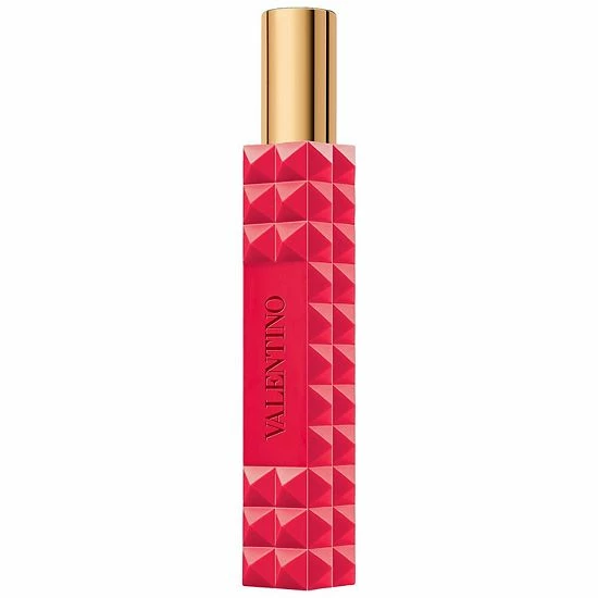 About the Bottle: A sleek glass bottle, square and notched on the sides, reveals the light passing through the encapsulated womens fragrance, allowing a V of light to emerge. The iconic Valentino rock stud details the chrome cap and collar alongside a vibrant red that contrasts the floral womens perfume within.
