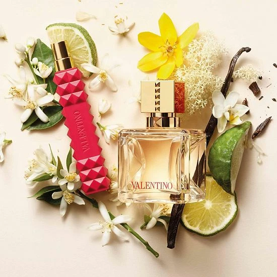 Fragrance Description: This scent is an ode to Valentinos femininitya harmony of couture orange blossom absolute and golden gardenia paired with colorful Italian bergamot and mandarin. This perfume is made addictive through an unexpected, cool note of crystal moss accord and vanilla perfume.