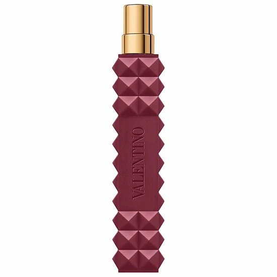 About the Bottle: The sleek block of glass reflects the light passing through the golden-hued scent, allowing a V-shape light to emerge. Square and notched on the sides, signature rock studs adorn the top and collar of the bottle for modern, edgy elegance. Reflective of the romantic women’s scent held within, the bottle is signed by a deep burgundy shade of red-a symbol of power and glamour.